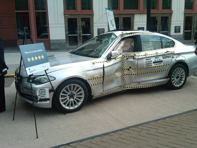 if you ‘ve followed our recent podcasts you ‘ll know we firmly believe BMW went all out to make the new F10 not only the safest 5 Series ever but the safest BMW currently on sale. Now we can quantify that.The new BMW 5 Series was one of only two vehicles to receive an overall five-star rating in the first crash tests conducted by the National Highway Traffic Safety Administration under the new, more stringent New Car Assessment Program (NCAP).
