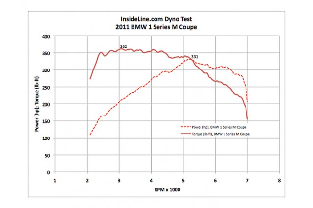 At the wheel Insideline saw 331 hp & 362 lb-tq. Those are huge numbers considering they ‘re taken at the wheel. For example Insideline did the same test on a N54 135i a few years back and got 285hp and 291lb-tq restively (which you can see here) . You can see the full graph after the break.