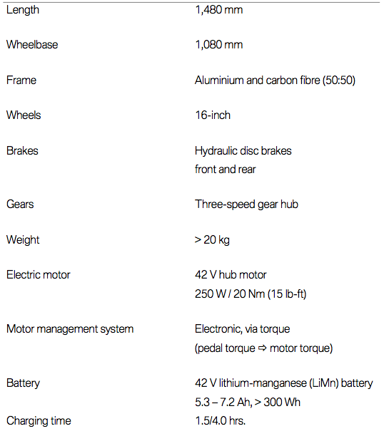 BMW i Pedelec Concept: specifications