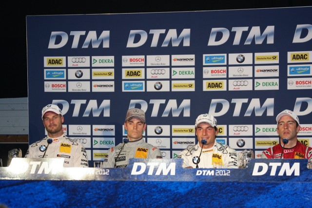 Norisring, 1st July 2012. A dramatic race at the Norisring (DE) saw Martin Tomczyk (DE) and Bruno Spengler (CA) celebrate another two podium finishes for BMW in the 2012 DTM season. In front of the very enthusiastic fans who numbered 135,000 over the weekend, Tomczyk crossed the finish line after 78 laps and the maximum race time of 75 minutes as runner-up his BMW M Performance Parts M3 DTM, just 0.687 seconds behind winning Mercedes driver Jamie Green (GB). Spengler followed in third place at the wheel of the BMW Bank M3 DTM. This is the second time this season BMW has had two of its drivers on the podium, with the first being the race at the Lausitzring (DE). Tomczyk repeated his excellent result from Spielberg (AT), where he finished second four weeks ago.