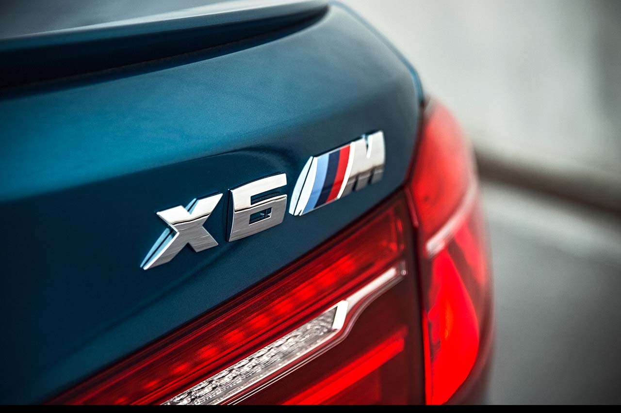 The rear ends of the BMW X5 M and BMW X6 M also differ significantly from their standard siblings, exuding a stronger aura and majoring on bold, sporty accents. This approach is underlined in particular by the wide rear tires (which are a different size from the fronts), the distinctive M rear aprons painted in body color and the hallmark M four-tailpipe exhaust. The diffuser element (likewise in body color) adapted from racing vehicles helps to ensure aerodynamically optimized airflow at the lower edge of the rear bumper moulding, allowing the new M models to highlight once again the impressive functionality of their design features. A rear spoiler painted in body color on the BMW X6 M reduces rear-axle lift.