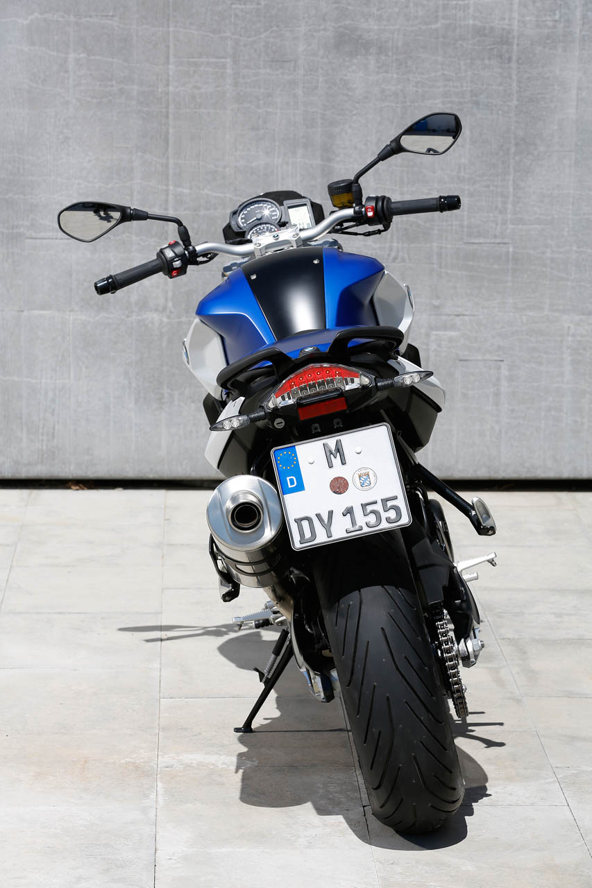 BMW is positioning the aesthetic design of the F800R, at least partially, toward novice riders. With redesigned fairings, radiator shields, front mudguard and wheels, the F800R has left its previous look behind. This was long overdue in our opinion, as the outgoing F800R looked about two generations old in terms of its design language. A new range of colors for the F800R also hope to widen its appeal. While the bike still retains that now signature BMW asymmetrical face, the new bike definitely shares more of the current family resemblance with bikes like the S1000R and the R1200R.