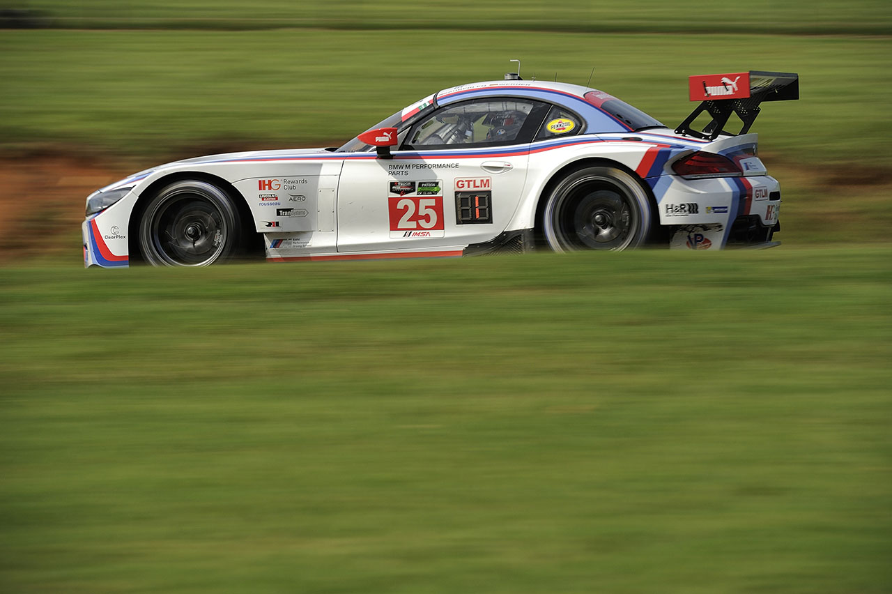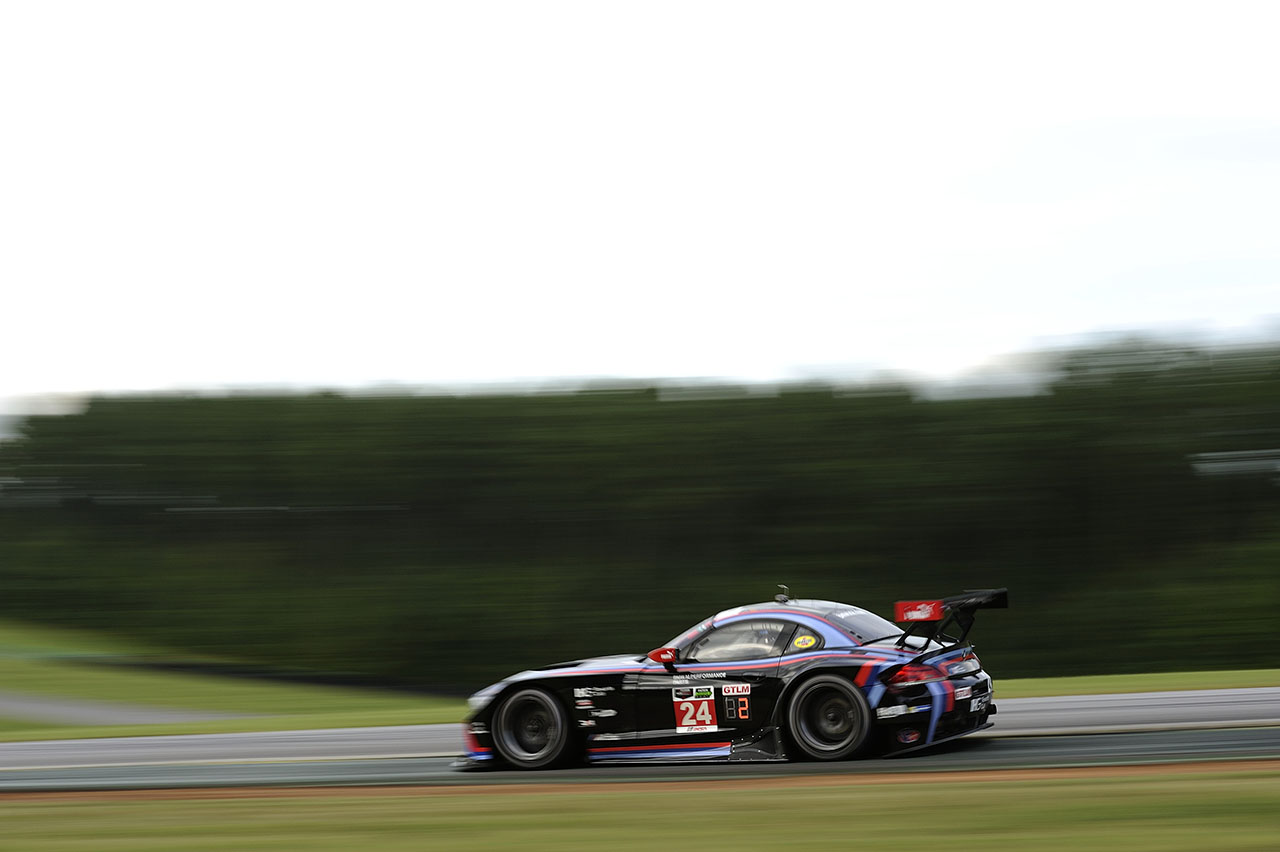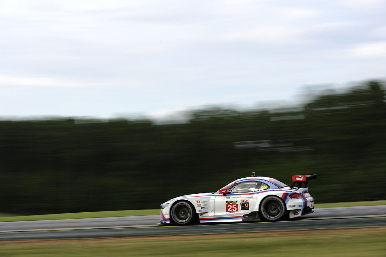 BMW Team RLL finished fourth and fifth in front of the large crowd that watched today’s two-hour-and-forty-minute TUDOR United SportsCar Championship Oak Tree Grand Prix at VIRginia International Raceway, in Alton, Va. John Edwards and Lucas Luhr, driving the No. 24 BMW Z4, finished fourth. Bill Auberlen and Dirk Werner finished fifth in the No. 25 machine. Both BMWs ended the race in the same positions from which they started. The race was won by the No. 911 Porsche.