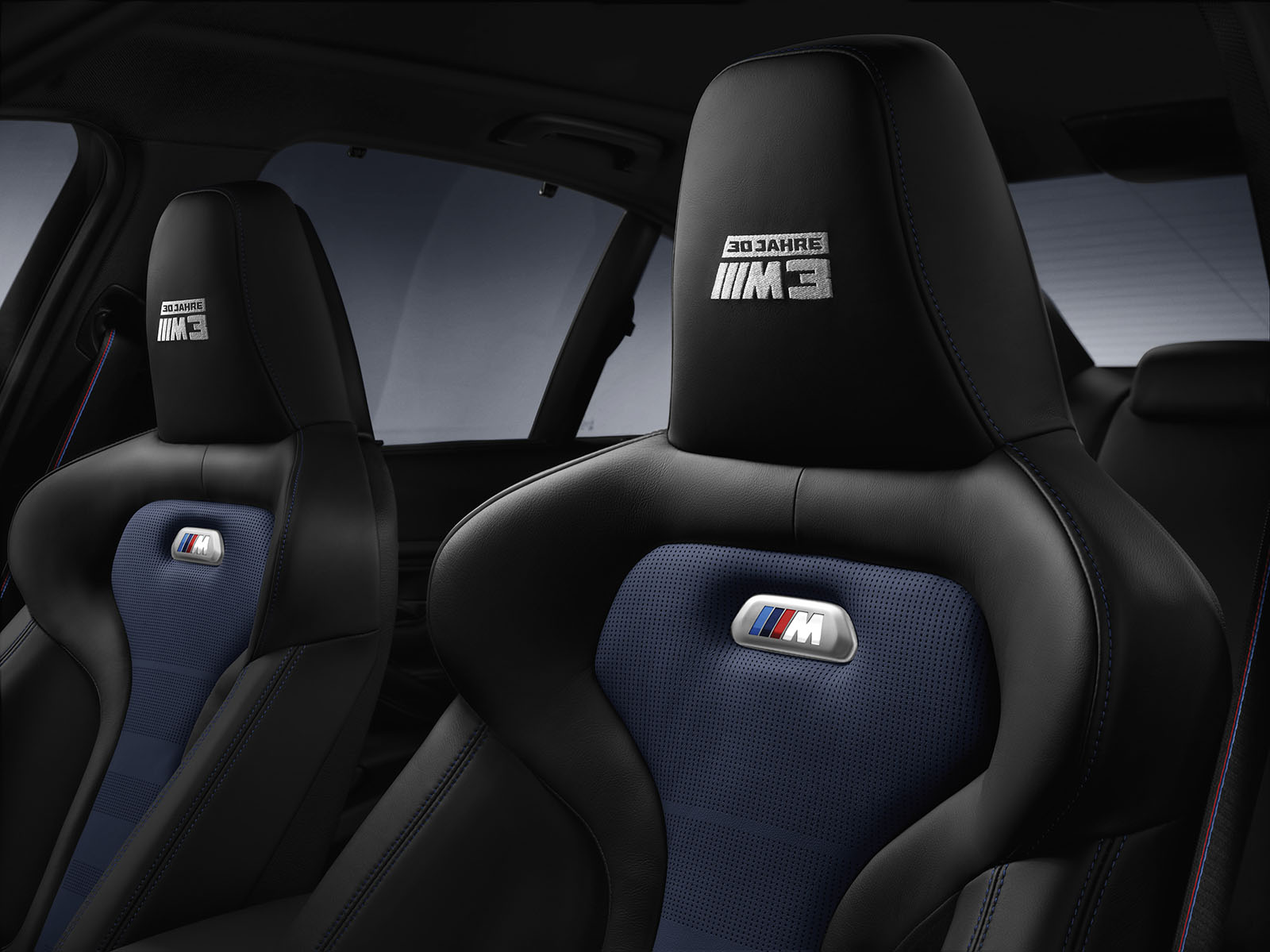 The BMW M3 “30 Years M3” features an exclusive full leather Merino trim in bi-colour Black/Fjord Blue or optionally in Black/Silverstone with colour-matching contrast seams that effectively underscore the anniversary model’s sporty and sophisticated character.