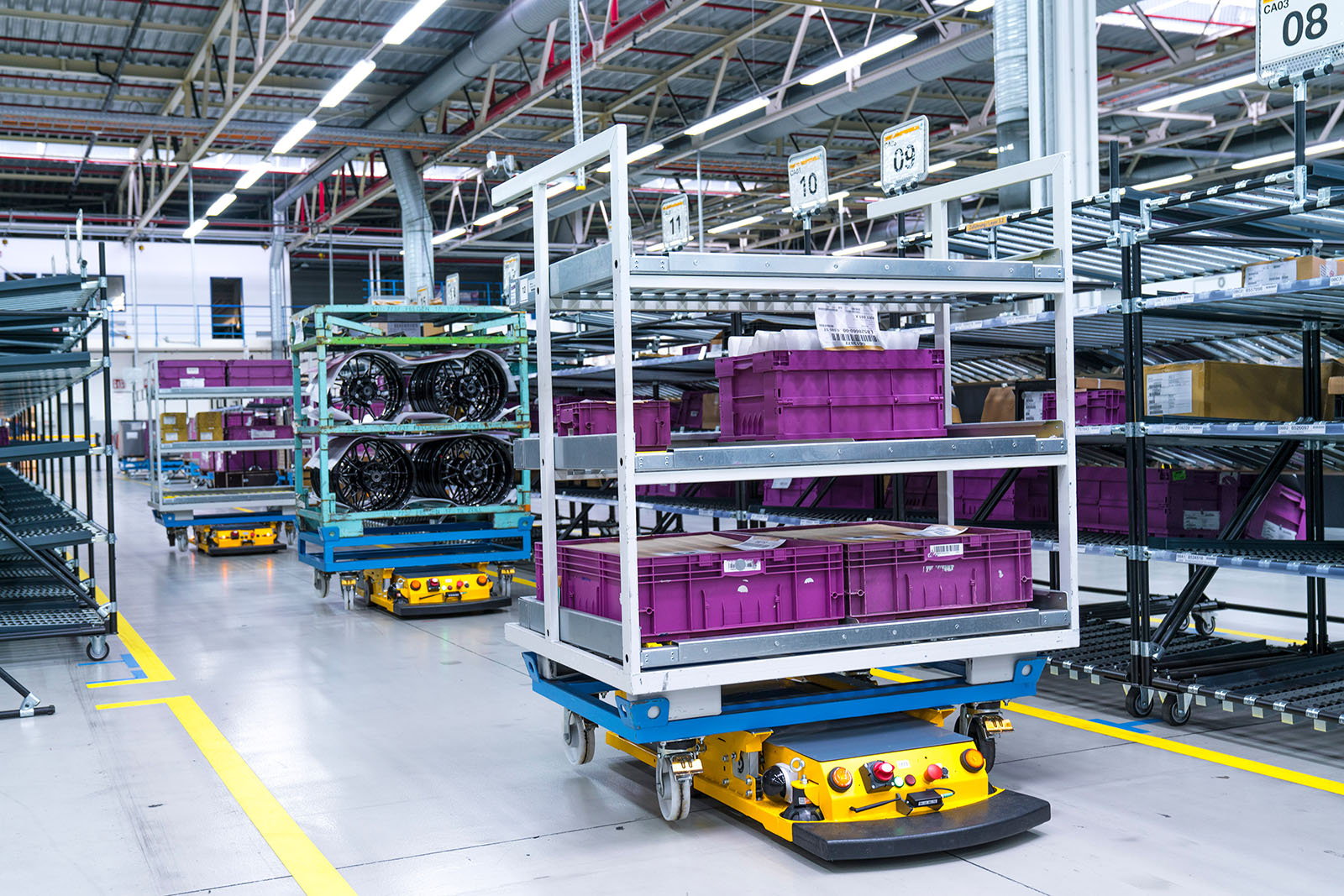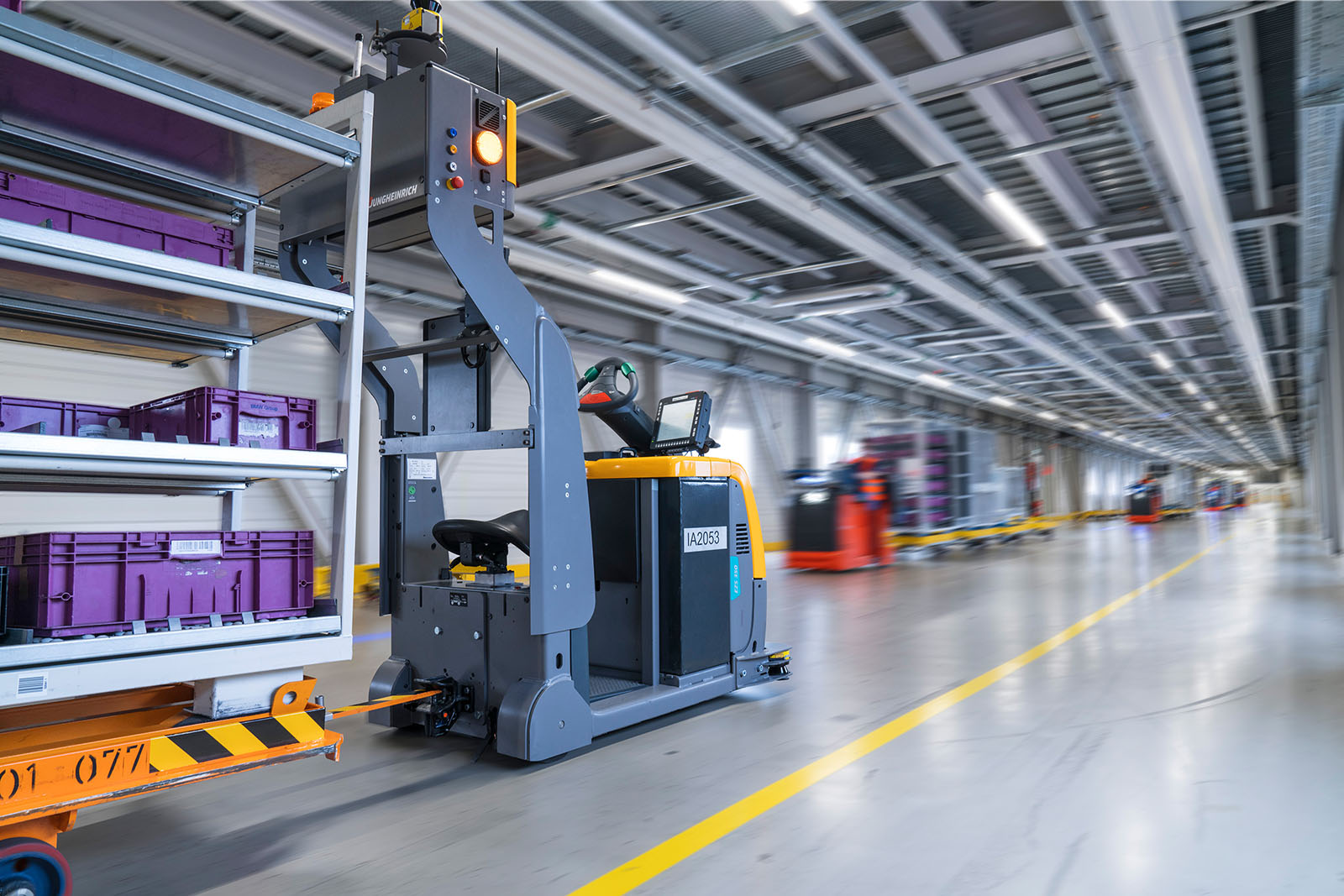 Autonomous tugger trains are being piloted in the halls of BMW Group Plant Dingolfing. The self-navigating tugger trains are used for supplying assembly logistics – especially for longer distances between individual warehouses and assembly areas. From a technical point of view, the independent steering and navigation of tugger trains relies on laser signals. By evaluating their reflection, the tugger train generates a digital 2D room profile in real time, which enables it to manoeuvre through the assembly hall and logistics areas along certain routes.