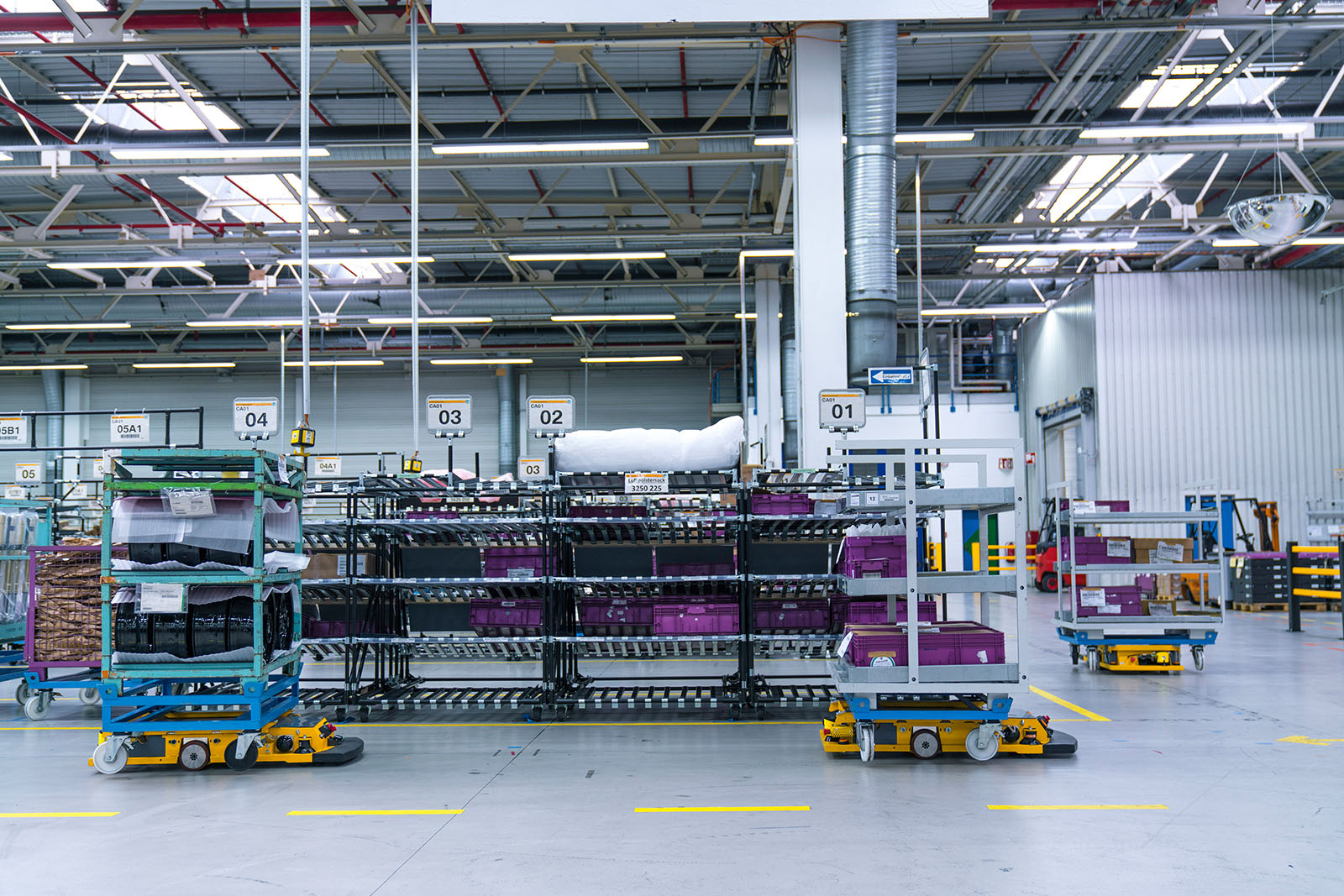 Autonomous driving also plays an increasingly important role in logistics. An initial fleet of ten self-driving Smart Transport Robots (STR) is transporting components through logistics at the Wackersdorf plant. What is unique is that the self-driving transport robot does not need floor-mounted induction loops for navigation, but moves freely through the logistics hall, powered sustainably by pre-used batteries from the BMW i3 and is able to transport containers weighing up to 500 kilograms. The STR measures the distance to wireless transmitters to calculate its exact position and route. Using sensors to identify and react to critical situations, it is able to share the route with humans and other vehicles. After five months of prototype operation, the project will be transferred to pre-series production, where the ten STRs will be used for the first time in everyday operations and perform transport assignments independently. In the next phase of development, a 3D camera system will enable even more precise navigation. The BMW Group has launched this project in conjunction with the Fraunhofer Institut IML in Dortmund.