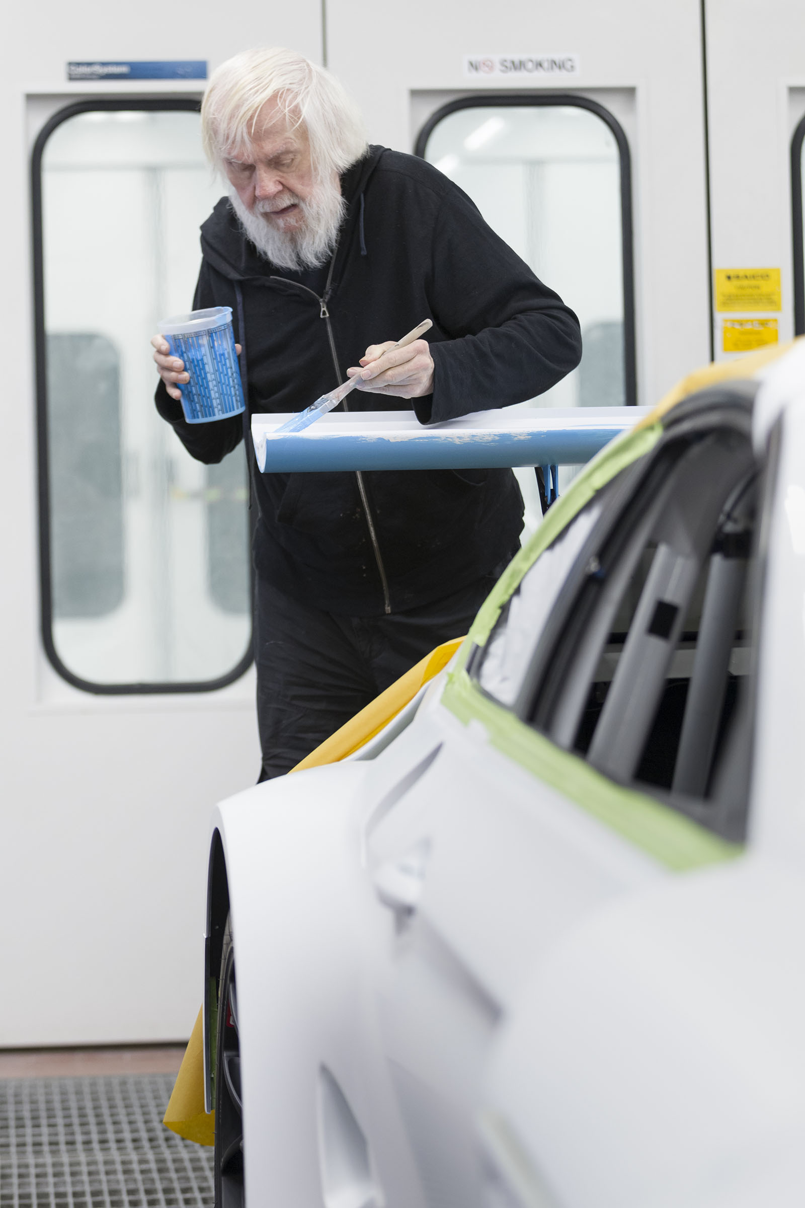 John Baldessari spearheaded and oversaw the design of the 19th BMW Art Car, which was executed with the help of a team of BMW engineers in early November at the BMW Body & Paint Training Center West in Oxnard, California.