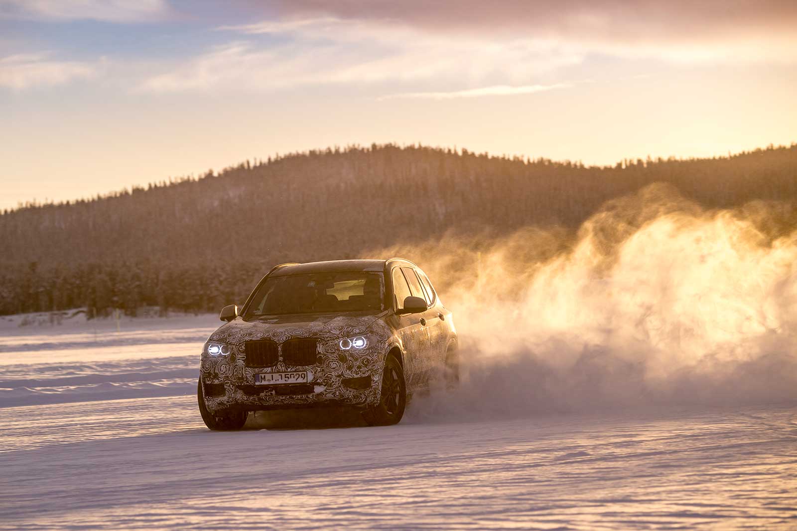 Within the framework of the final winter trials, a BMW testing team completed a fastidious testing programme in wintery North Sweden. In the landscape around the small town of Arjeplog, pre-series models of the new BMW X3 had to prove that they are also able to withstand cold, ice and snow. Located in the historic province of Lapland barely 56 kilometres south of the polar circle, Arjeplog offers the ideal conditions for this. An abundant amount of snow and temperatures of minus 20 degrees and below cause the many lakes in the surrounding area to freeze over. The resulting vast, even surfaces serve as proving grounds on which steering, suspension and drive characteristics can be meticulously tested and various different technical solutions compared against one another. In the process, the intelligent four-wheel technology xDrive is able to demonstrate its advantages by not only ensuring best possible traction on icy surfaces but, thanks to fully variable distribution of torque, also by optimizing handling agility, this in turn resulting in enhanced driving dynamics and active driving safety.