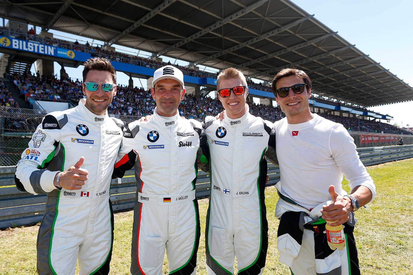 The two Schubert Motorsport team BMW M6 GT3s reached 11th (#20) and 12th (#19) places on the 25.378-kilometre circuit. Jesse Krohn (FIN), Bruno Spengler (CAN), Kuno Wittmer (CAN) and Jörg Müller (GER) were at the wheel of the #20 car. Jens Klingmann (GER), John Edwards (USA), Tom Onslow-Cole (GBR) and Müller shared driving duties in the #19 car. The second BMW M6 GT3 from ROWE Racing (#99) claimed tenth place with Philipp Eng (AUT), Alexander Sims (GBR), Maxime Martin (BEL) and Marc Basseng (GER).
