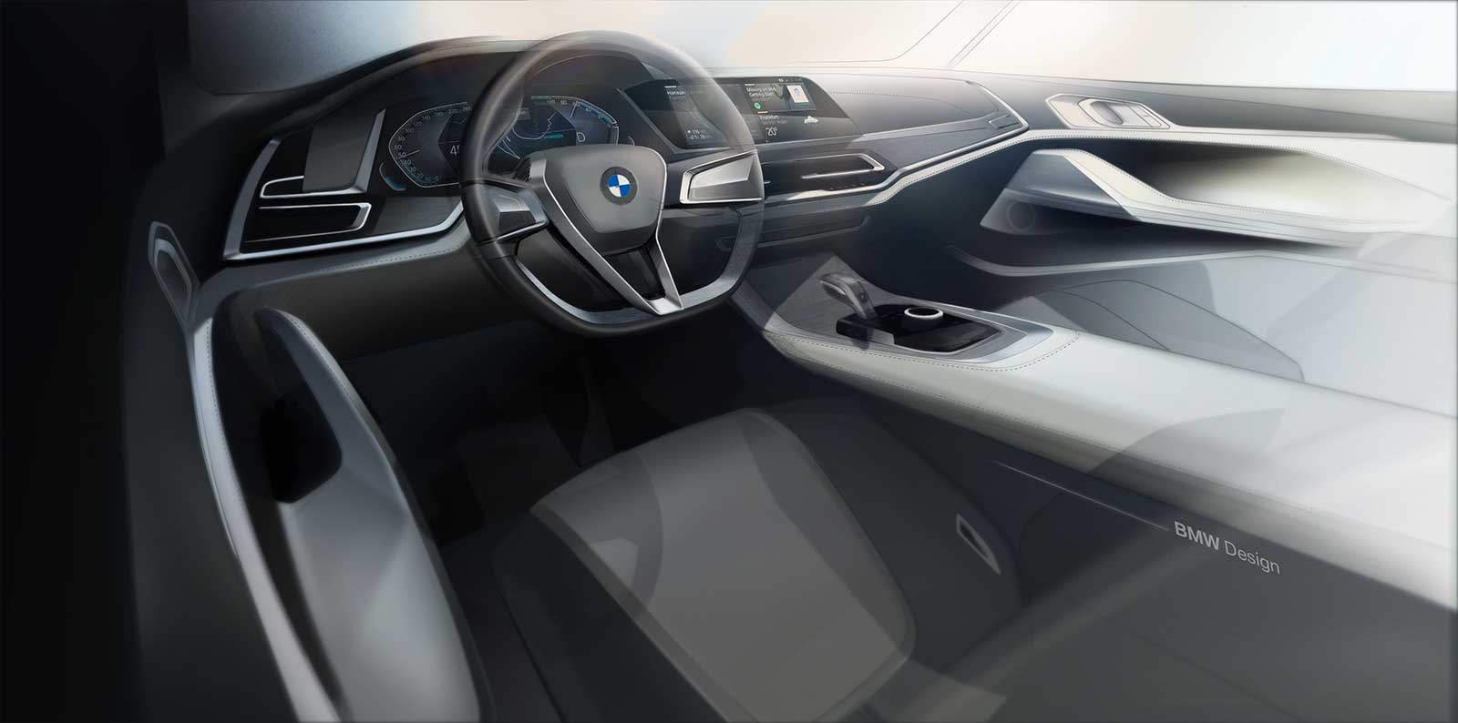 Inside the roomy cabin of the BMW Concept X7 iPerformance, clear forms, warm colours and select materials combine to create a highly exclusive,