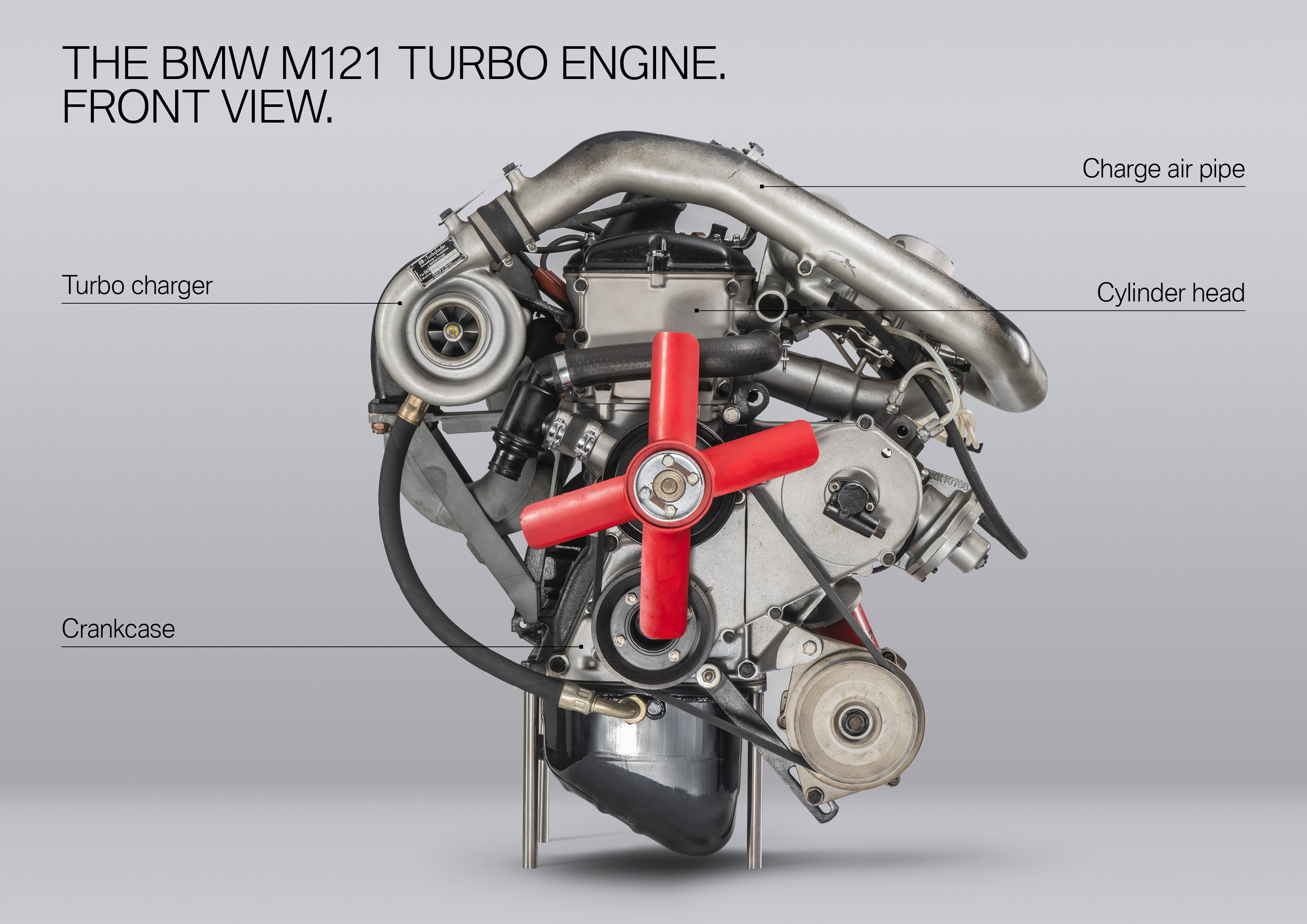 The pressure with which the combustion air is supplied to the engine, can hardly be compared any more. With 0.98 bar of pressure, the first generation of turbo race engine achieved approx. 280 hp at 6,500 rpm. The exhaust fan was theoretically capable of developing a boost pressure of 1.76 bar. However, the pressure in the cylinder would have been so great, that the cylinder head would have lifted off. Nowadays, boost pressures of up to 2.5 bar are possible with more than 600 hp. The crankcase and cylinder head were manufactured in a special sand-casting procedure in the BMW Landshut foundry.
