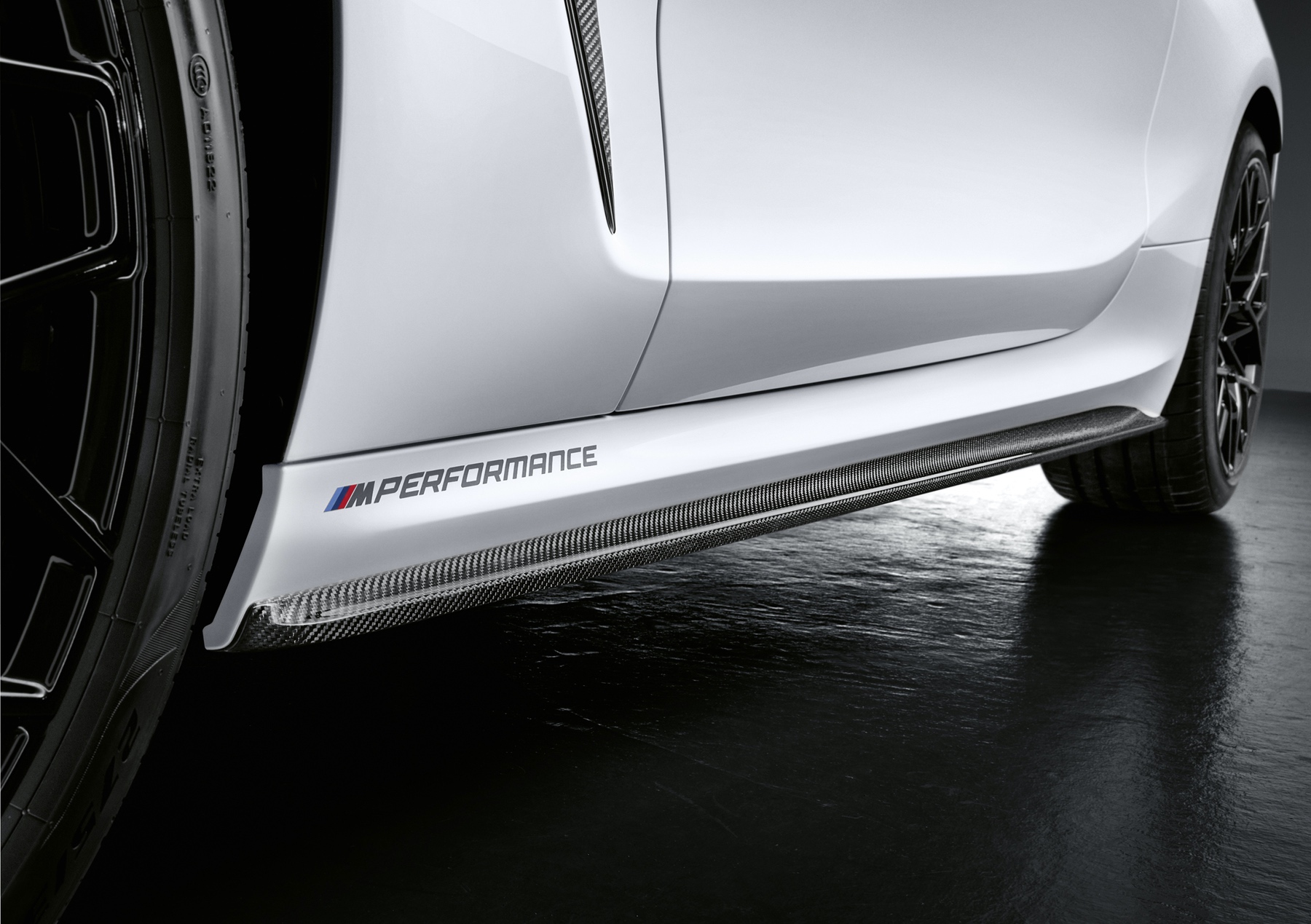 As a supplement to the optional Carbon Package, the M Performance carbon fibre exterior components round off the dynamic, elegant motor racing style of the new BMW M8. While the M Performance sill attachments give the vehicle additional length in visual terms, the M Performance carbon fibre radiator grille and M Performance carbon fibre side decorative grille guarantee a compelling front view. Developed specially for the BMW M8, these components with exposed carbon fibre finish are elaborately crafted by hand and mutually harmonised. Sealed with a clear finish and a high-gloss polish, they are UV and temperature-resistant as being car wash compatible. The same applies to the M Performance engine cover – an impressive premium racing-style eye-catcher when the bonnet is open.